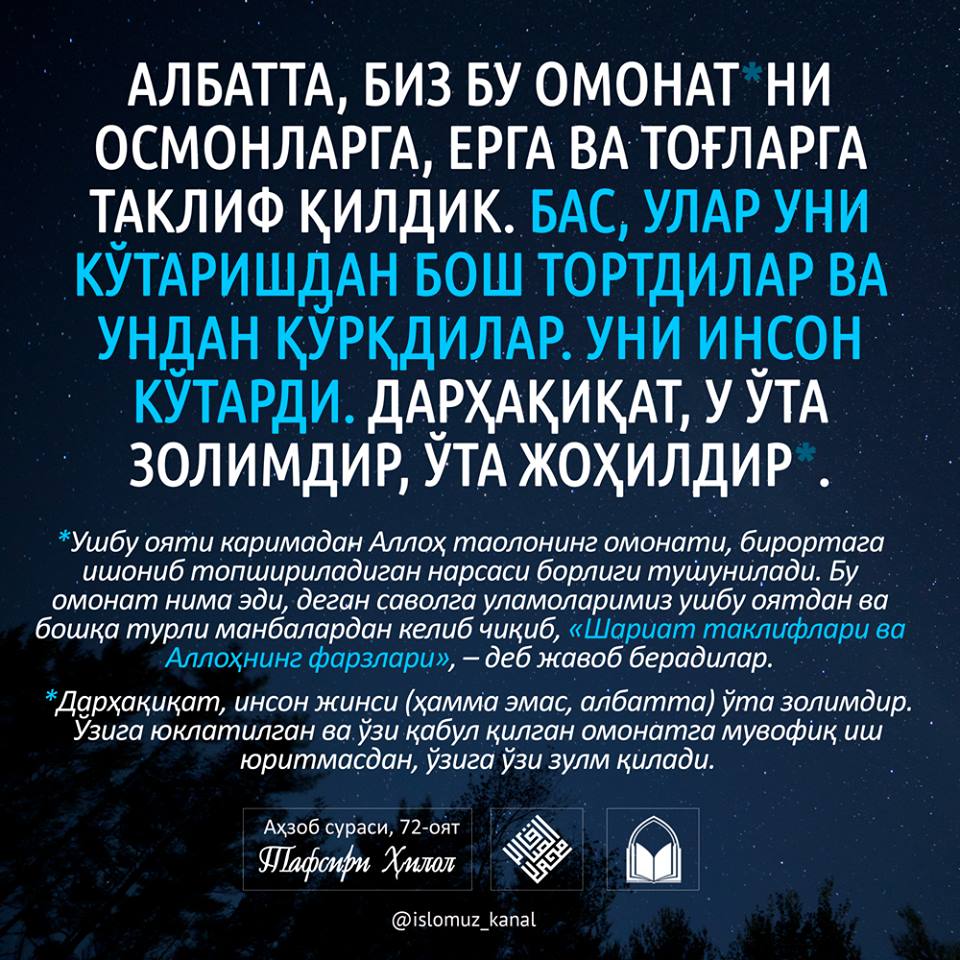 «Қуёш ўз истиқрори учун юрадир. Бу ўта иззатли, ўта билувчи Зотнинг ўлчовидир»
