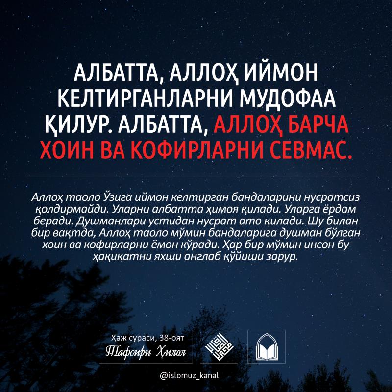 Пайғамбаримизга мукаммал ва батамом салавоту дурудлар бўлсин.