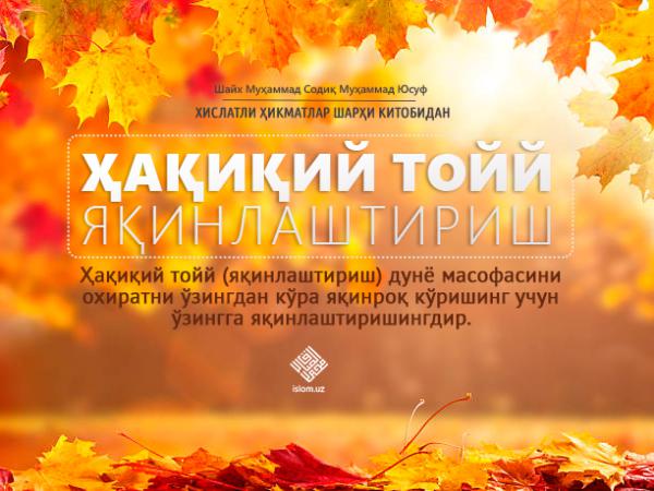 Ҳақиқий тойй (яқинлаштириш) дунё масофасини охиратни ўзингдан кўра яқинроқ кўришинг учун ўзингга яқинлаштиришингдир.