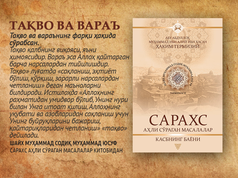 – Барча вақт ва ҳолатда Аллоҳдан рози бўлиш».