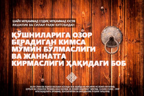 «Эй ўғлим! Мен тошни, темирни, барча оғир юкларни кўтардим. Лекин ёмон қўшнидан оғирроқ нарсани кўтармадим», деди».