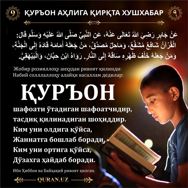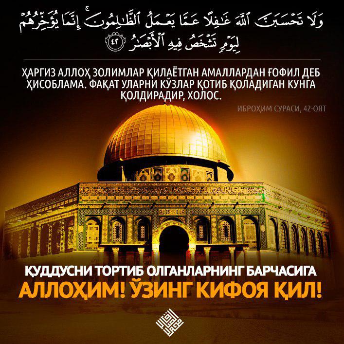Бисмиллаҳир Роҳманир Роҳийм. Аллоҳ таолога битмас-туганмас ҳамду санолар бўлсин. Пайғамбаримизга мукаммал ва батамом салавоту дурудлар бўлсин.
