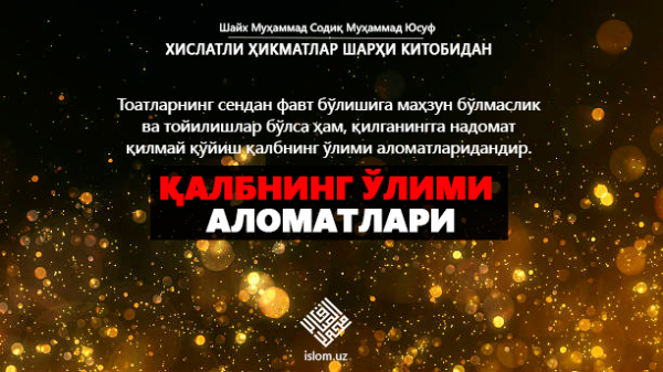 Насиҳат. Биродарларим! Бу гапга эътибор билан қаранг. Охират хавфидан нажот топиш учун салавоти шарифни кўп айтишга одатланинг. Дилингизда барча гуноҳкорларнинг шафоатчиси бўлмиш Муҳаммад соллаллоҳу алайҳи васалламга муҳаббат пайдо қилинг, шояд, қиёмат кунидаги ҳалокатдан омонда бўлсангиз. Агар ҳар доим салавот айтолмасангиз, бўш вақт топишингиз билан фурсатни зое қилиб, бекор ўтказиб юборманг. Агар бунга ҳам имконингиз бўлмаса, бирор мажлисда у зотнинг муборак номлари тилга олиниши билан салавот айтиб, тилингизни ширин қилиб олинг. Шак-шубҳасиз, доим салавот айтиб юрган одам ўлганда юзи қораликдан сақланади, қиёмат куни унга шод бўлиб кулмоқлик бахти насиб бўлади. Бу замондаги одамларнинг қалби Расулуллоҳ соллаллоҳу алайҳи васалламга муҳаббатдан холи бўлгани сабабли, Аллоҳ таолонинг муҳаббатидан ҳам холидир. Зеро, киши ҳабибни (Расулуллоҳ соллаллоҳу алайҳи васалламни) яхши кўрмагунича муҳибни (Аллоҳ таолони) сева олмайди. Шунинг учун мажлисларда у зот соллаллоҳу алайҳи васалламнинг номлари зикр этилса, аксар одамлар салавот айтмасдан, тўрт оёқли ҳайвонга ўхшаб, жим ўтираверишади. Бу эса умматга ярашмайдиган, ачинарли ҳолатдир. Аллоҳ таоло доимо тилимизда салавот бўлишини, қалбимиз эса он Ҳазрат соллаллоҳу алайҳи васалламга муҳаббат билан тўлиб-тошишини насиб айласин! Омин.