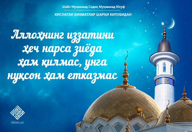 «...Ва билки, агар умматнинг барчаси йиғилиб, сенга манфаат етказмоқчи бўлсалар ҳам Аллоҳ сен учун тақдир қилиб қўйган нарсадан ўзга ҳеч бир нарса қила олмайдилар. Агар сенга зарар етказиш учун тўплансалар ҳам Аллоҳ сен учун тақдир қилиб қўйган нарсадан ўзга ҳеч бир нарса қила олмайдилар», дедилар.