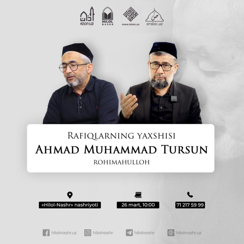Эртага Шайх Муҳаммад Содиқ Муҳаммад Юсуф ҳазратларининг сафдошларидан, ҳассос адибимиз, халқимиз ардоғидаги ёзувчи, устоз Aҳмад Муҳаммад Турсуннинг Aллоҳ улардан давоми...
