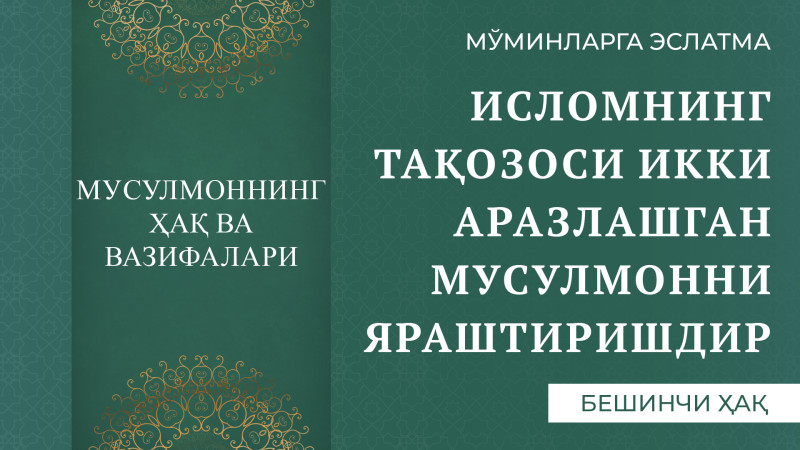 «Ким зулмидан кейин тавба этса ва ислоҳ қилса, Аллоҳ албатта тавбасини қабул қиладир. Албатта, Аллоҳ ўта мағфиратлидир, ўта раҳмлидир» (Моида сураси, 39-оят).