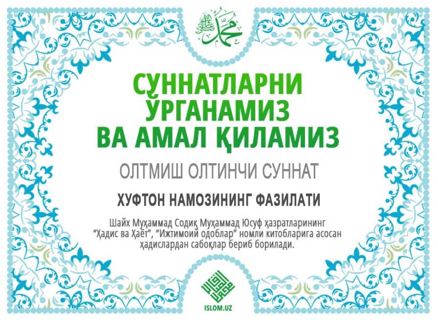 Пайғамбаримизга мукаммал ва батамом салавоту дурудлар бўлсин.
