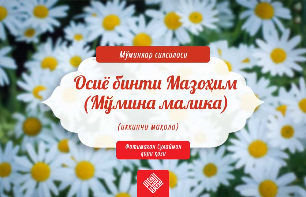 биринчи мақолаСаййидаи Осиё розияллоҳу анҳо Фиръавннинг аёли бўлиб, Аллоҳга, Мусонинг расуллигига иймон келтирганлар. Фиръавннинг динидан қайтганлар, унинг зулм давоми...