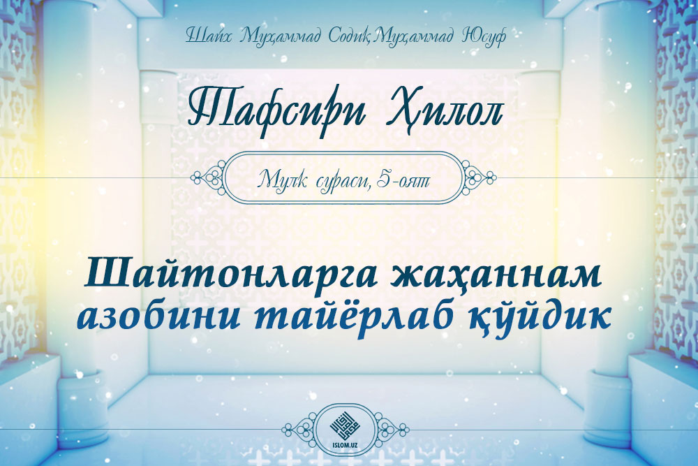 Аллоҳ таоло Мулк сурасида шундай марҳамат қилади .Ва батаҳқиқ, Биз дунё осмонини чироқлар билан зийнатлаб қўйдик ва уларни шайтонларга отиладиган нарса ҳам давоми...