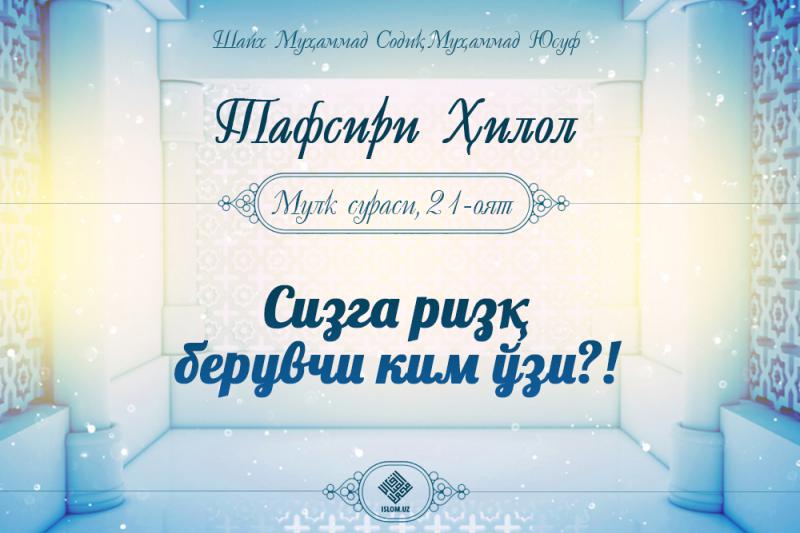 Аллоҳ таоло Мулк сурасида шундай марҳамат қилади У ризқни тортиб қўйса, сизга ризқ берадиган ким ўзи Йўқ Улар саркашликда ва ҳақдан қочишда бардавом давоми...