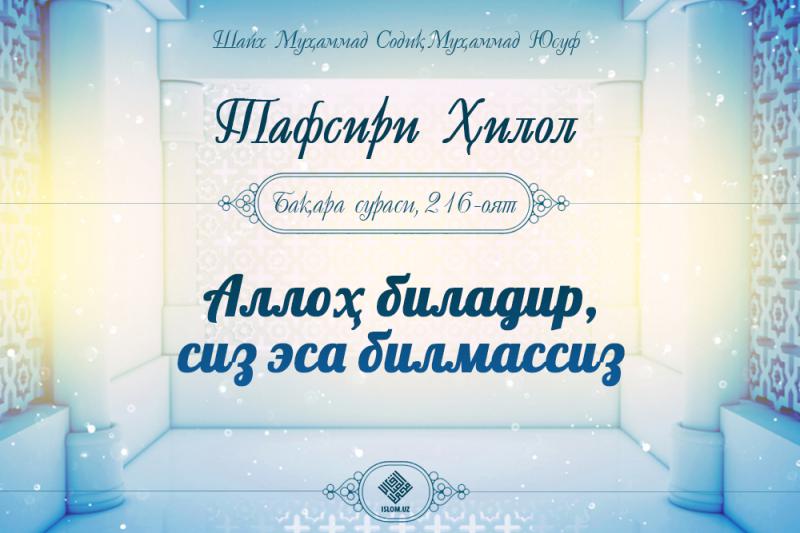 Аллоҳ таоло Бақара сурасида шундай марҳамат қилади . Ажаб эмаски, ёқтирмаган нарсангиз сиз учун яхши бўлса. Ва ажаб эмаски, ёқтирган нарсангиз сиз учун давоми...