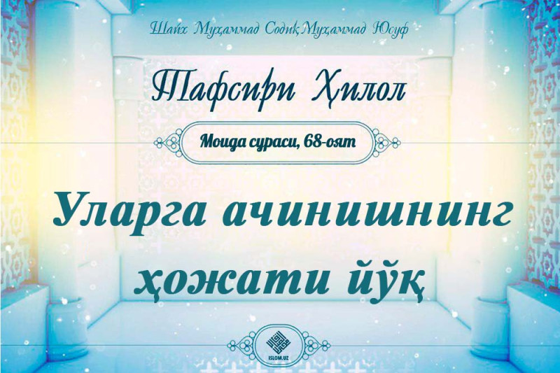 .Эй аҳли китоблар Тавротга, Инжилга ва сизга Роббингиздан нозил қилинган нарсага тўлиқ амал қилмагунингизча давоми...