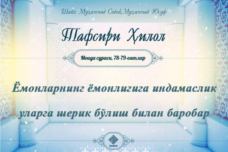 .Бану Исроилдан куфр келтирганлари Довуд ва Ийсо ибн Марям тилларида лаънатландилар. Бу осийлик қилганлари ва ҳаддан ошганлари учундир, Моида давоми...