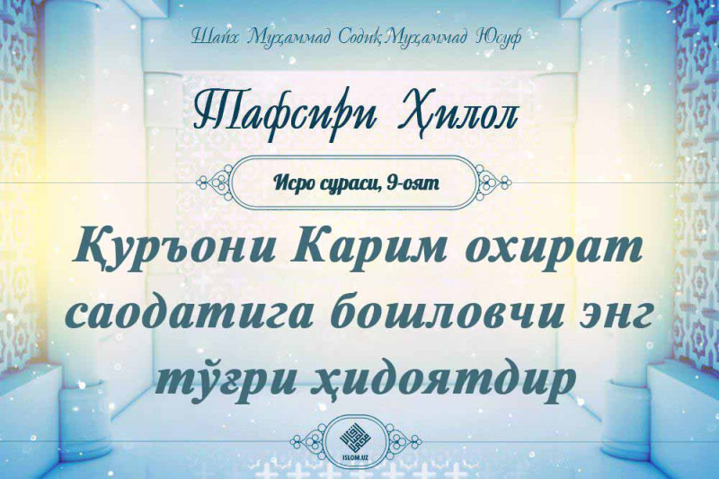 .Албатта, бу Қуръон энг тўғри йўлга ҳидоят қилур ва солиҳ амалларни қилувчи мўминларга хушхабарини давоми...