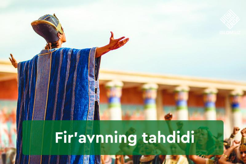 Firaposavn o`zining g`azab o`qlarini bo`shatgach, Muso uni Alloh o`qi bilan otmoqchi bo`ldi..Muso dedi, Yoki men senga ochiqoydin narsa keltirsamchi,.Firaposavn dedi .Agar rostgo`y kishilardan bo`lib, oyat mo`aposjiza bilan kelgan bo`lsang, qani uni keltir,..Shunda Muso tutib turgan asosini
