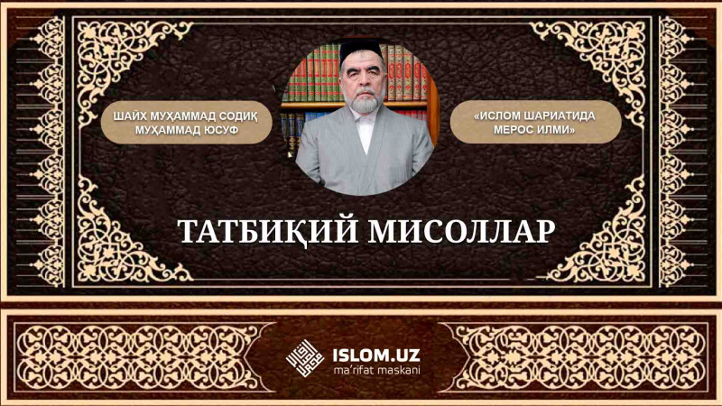 Бу ердаги икки масала фароиз уламолари орасида машҳур бўлган. Биринчиси .Кичик динория,, иккинчиси .Катта динория, дейилади. .Кичик динория,даги меросхўрлар бари давоми...