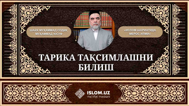 Марҳумдан кейин қолган пул, буюм ёки кўчмас мулк каби нарсалар тарика дейилади. Ушбу тарика меросхўрлар ўртасида уларнинг улушларига кўра тақсимланади. Марҳумдан давоми...