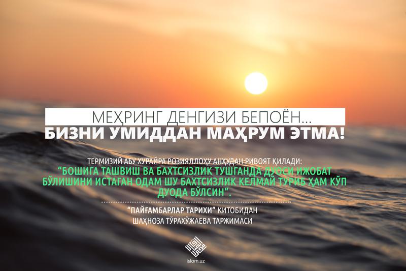 quotИмонимиз ҳаққи гуноҳларимизга кўз юм, дуоларимизни қабул эт...quotТермизий Абу Хурайра розияллоҳу анҳудан ривоят қилади Бошига ташвиш ва бахтсизлик тушганда давоми...