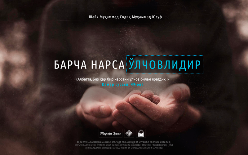 .Албатта, Биз ҳар бир нарсани ўлчов билан яратдик. ,Ушбу оятдаги .ўлчов, сўзининг икки хил шарҳи бўлиб, бири .қазои қадар, маъносини, иккинчиси .миқдор,, .ўлчов, давоми...
