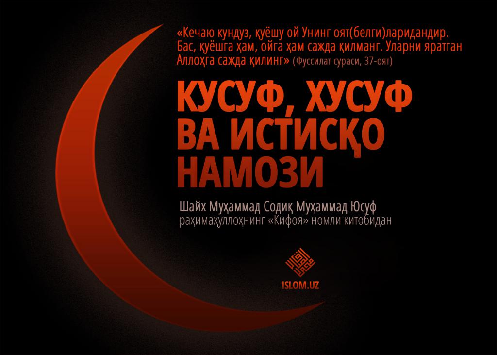 . . . . . Қуёш тутилганда жуманинг имоми одамлар билан икки ракъат нафл намоз ўқийди. Иккисида қироатни махфий ва узоқ қилади. Сўнгра то қуёш очилиб давоми...