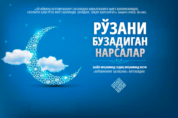Банда қуйидаги ишларни ўз хоҳиши билан амалга оширса, унинг рўзаси бузилади ва унга рўзанинг қазосини тутиб, каффоратни ўташ вожиб бўладиndash озуқа ёки дармон давоми...