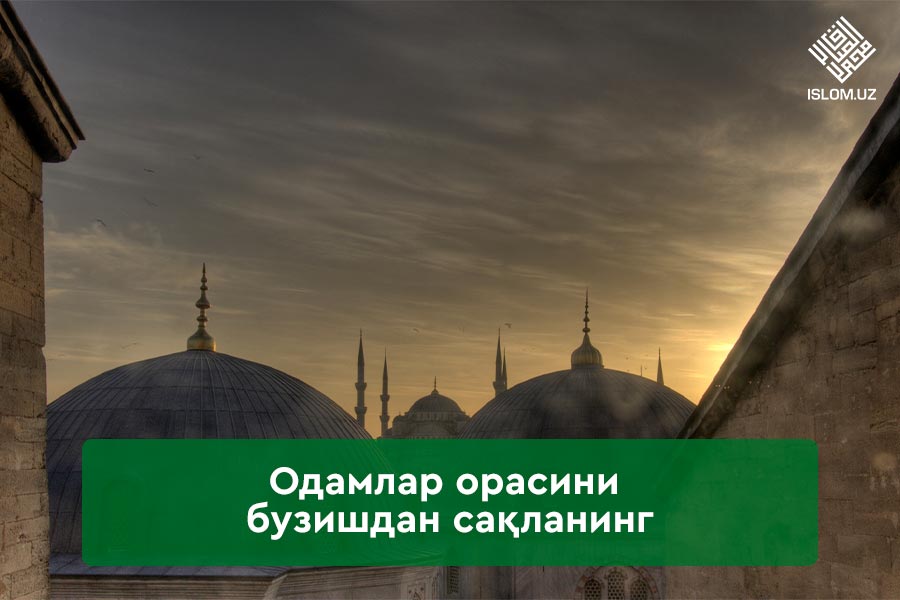 .Расулуллоҳ соллаллоҳу алайҳи васаллам .Одамлар орасини бузишдан сақланинг, чунки бу динни қирувчидир,, дедилар,.