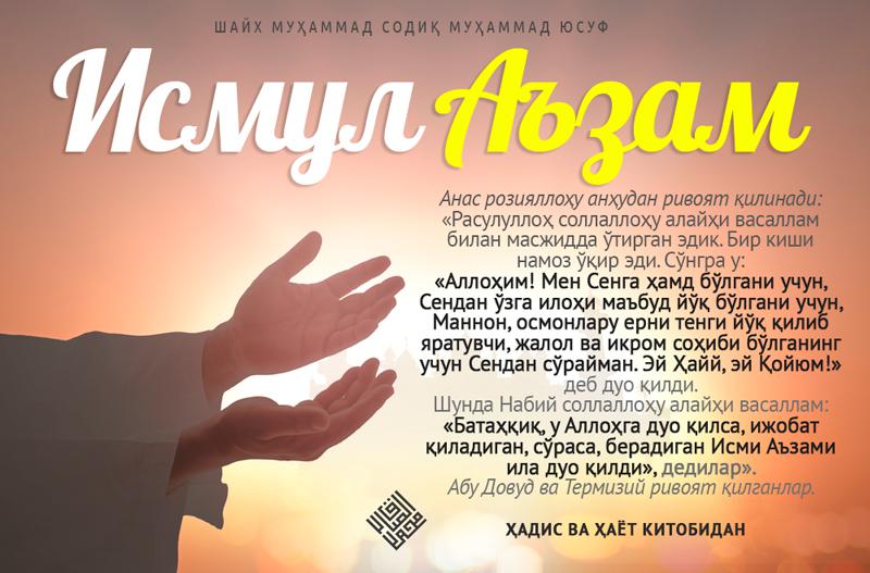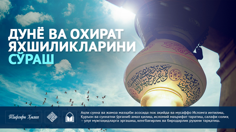 Умму Салама розияллоҳу анҳудан ривоят қилинади Расулуллоҳ соллаллоҳу алайҳи васаллам уйимдан чиқаётганларида юзларини самога қаратиб доимо Ё Роббим, адаштириш давоми...