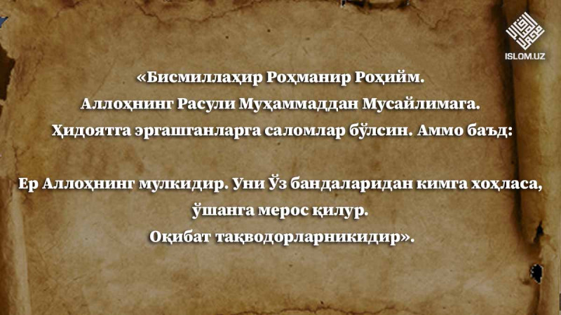 Бану Ҳанифа элчилари Расулуллоҳ соллаллоҳу алайҳи васалламнинг ҳузурларига келишди. Уларнинг орасида машҳур бузғунчи Мусайлима Каззоб ҳам бор эди. Бу нобакор давоми...