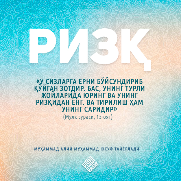 Ризқ инсон ҳаётидаги ҳассос мавзулардан ҳисобланади. Аллоҳ субҳанаҳу ва таоло инсонни яратиб, унинг ҳаёт кечириш сабабларини ҳам муҳайё қилиб қўйди, ер ва ундаги давоми...