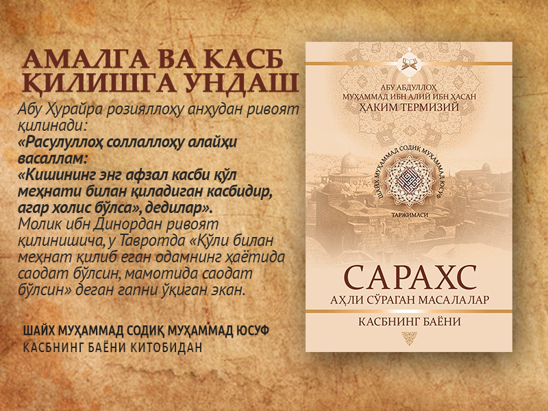 Абу Ҳурайра розияллоҳу анҳудан ривоят қилинади.Расулуллоҳ соллаллоҳу алайҳи васаллам.Кишининг энг афзал касби қўл меҳнати билан қиладиган касбидир, агар холис давоми...