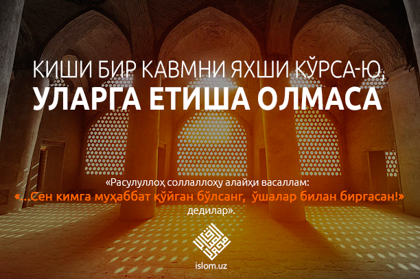 351. Абу Зарр Ғифорийдан ривоят қилинади.Расулуллоҳ соллаллоҳу алайҳи васалламдан.Эй Аллоҳнинг Расули Киши бир қавмни яхши кўрсаю, уларнинг амалларига етиша давоми...