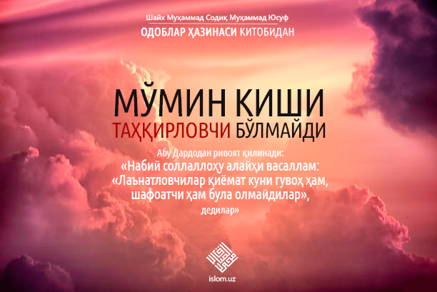 309. Солим ибн Абдуллоҳдан ривоят қилинади.Абдуллоҳнинг бирор кимсани лаънатлаганини ҳеч эшитмадим. Фақат инсоннигина эмас бошқа нарсаларни ҳам,.Солим яна айтади давоми...