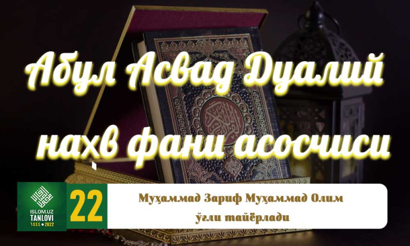 Абул Асвад Золим ибн Амр инб Золим Дуалий. Маккаи Мукаррама жанубидаги Бани Дуъл қабиласидан бўлган. Шунинг учун Дуалий нисбасини олган. У давоми...