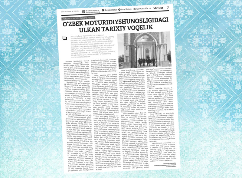 .Ҳилол нашр, нашриёти ва Islom.uz портали жамоаси босмахонамизнинг собиқ раҳбари Миразиз ҳожининг падари бузрукворлари Жўра ҳожи отанинг вафотлари муносабати билан давоми...