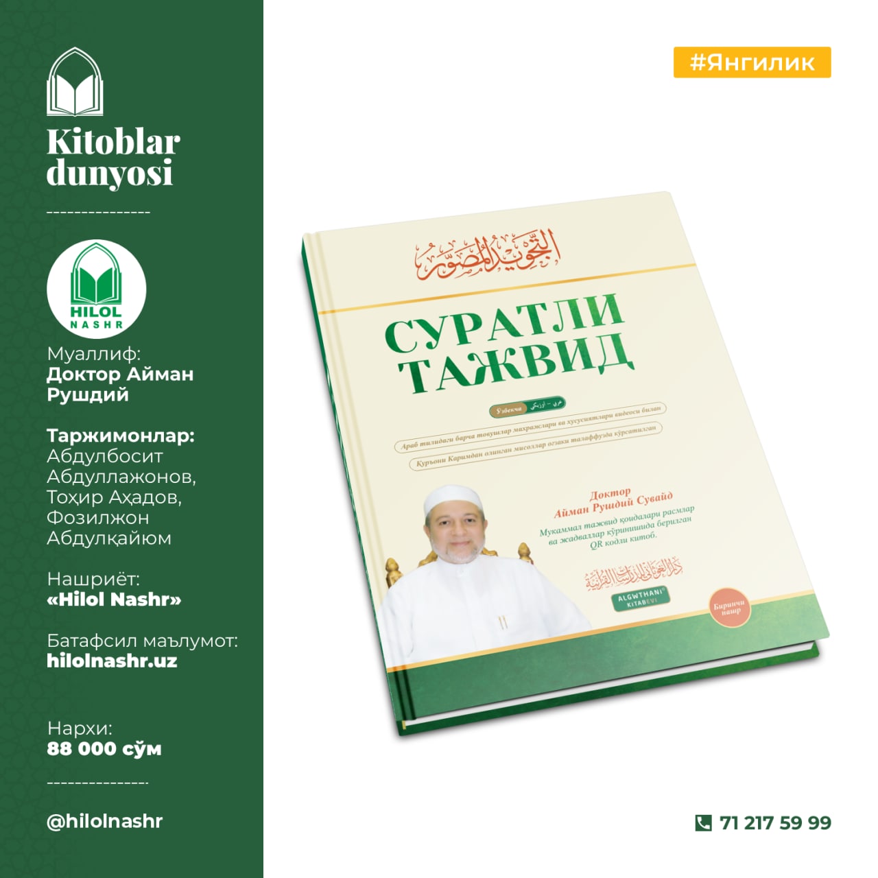 Навбатдаги янгилик Доктор Айман Рушдийнинг .Суратли тажвид, асари ўзбек китобхонларига асл нусхаси ва муаллифнинг расмий рухсати асосида илк бор тақдим давоми...