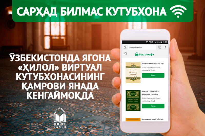 Ўзбекистонда ягона .Ҳилол, виртуал кутубхонасининг қамрови янада кенгаймоқда.Ҳилолнашр, нашриётматбаасининг ташаббуси билан яратилган .Ҳилол, виртуал давоми...