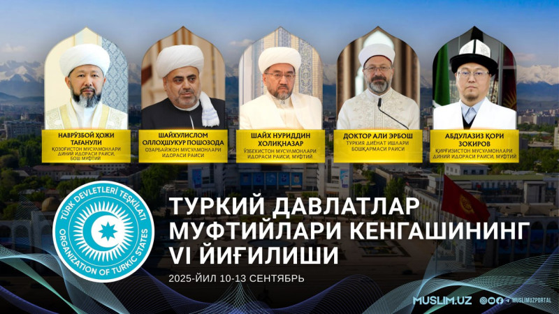 Жорий йилнинг 1013 сентябрь кунлари Туркий давлатлар муфтийлари кенгашининг VI йиғилиши Бишкек шаҳрида бўлиб ўтади. Унда Ўзбекистон мусулмонлари идораси раиси, давоми...