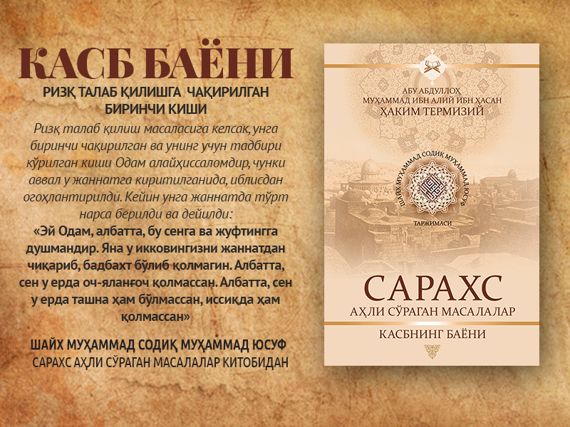 Ризқ талаб қилишга чақирилган биринчи кишиРизқ талаб қилиш масаласига келсак, унга биринчи чақирилган ва унинг учун тадбири кўрилган киши Одам алайҳиссаломдир, давоми...